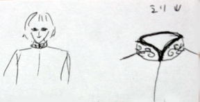 すると突然、バスルームに閉じ込められた15才ぐらいの少年が見えたのです。黒い髪、白い肌、白いレースのブラウス、黒のパンツ。とってもひ弱そうな西洋人。
