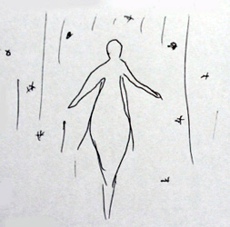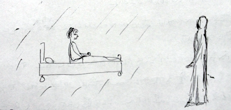 私は両親と一緒にいて、車の外に出ていました。私の母が父の腕に支えれれて地面 に横たわっていました。彼女には死が近づいていました。事故にあったのではなく、 病気なのでしょう。私は5歳ぐらいの少女で水色の肌で、少し離れたところでそれを 静かに見ていました。