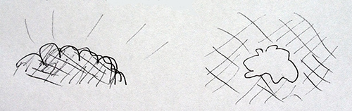 時に何かと共鳴が起きると、ノイズの一部がクリアになり、イメージが見える。その間、音は消える。再び音に集中、これをずーっと繰り返していた。考える事もな く、思考もない。解明しようともしない。不思議なプロセス。