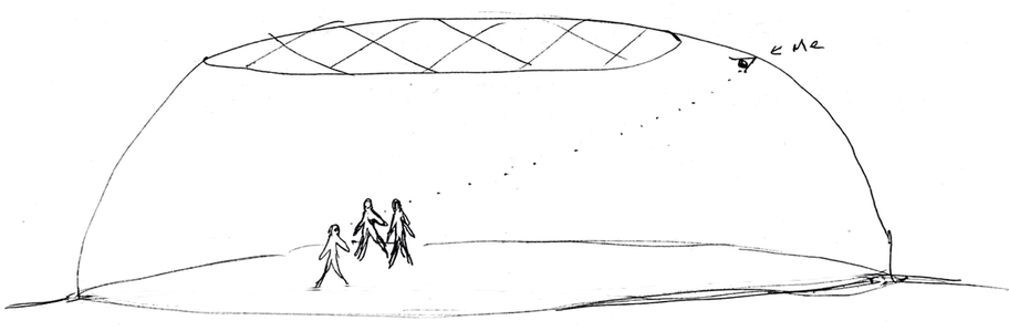 今度は前回見た大きな光のドームの下で、3人の光の存在が話しているのを天井から見ていたシーンにいた。