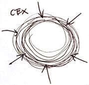 初めて、CE-X(?)音が聴こえた瞬間から宇宙空間に浮かんでいる。星々の輝き、様々な色の輝きの中に浮かんでいたら、だんだんと外と内の区別がなくなり、一体となり、響きあって溶けていく。細胞のひとつひとつが本来の姿を流れはじめ、ふと細胞が修ふくされているのだと感じた。CEがデータの書き換え、アップデートに感じたのに対して、CE-Xはすべての細胞、DNA/RNAが本来の姿へと戻り、宇宙の流れとともに、広がっていくのだと感じた。時々、ザーっという音に、地球へと着地して大きなエネルギーの流れを、肉体をもつことで宇宙との一体を生み出す、という感覚がくり返された。細胞に宇宙をつくり、宇宙からのはるかに大きな流れを肉体をもつことで地球に流す…。何度か強くその感覚を味わい、その心地よさに楽しさを感じた。