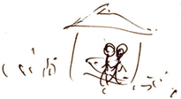 ③ 通り抜ける。次に気づいたのは、“地上”。旅、人間としての旅。思い出そうとする。まず、静かにみている。プリシティグな地上。(前に体験して、しっている場面だが、新しい要素、かぞく現れた。)
