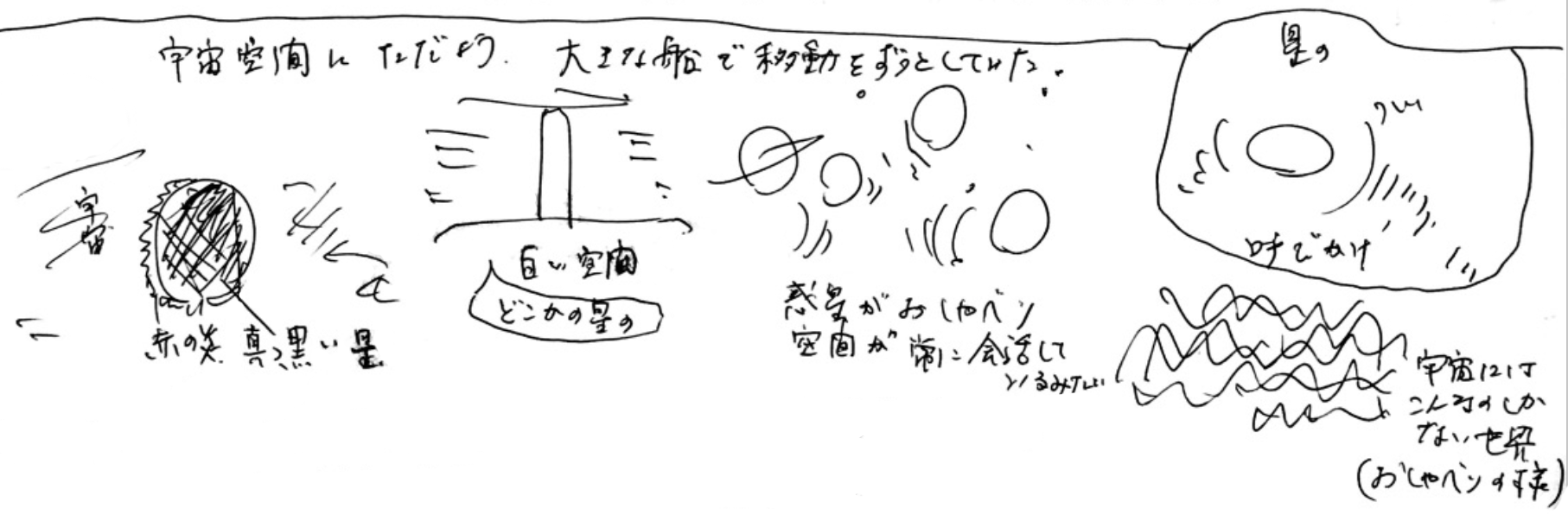 宇宙空間にただよう大きな船で移動をずっとしていた。