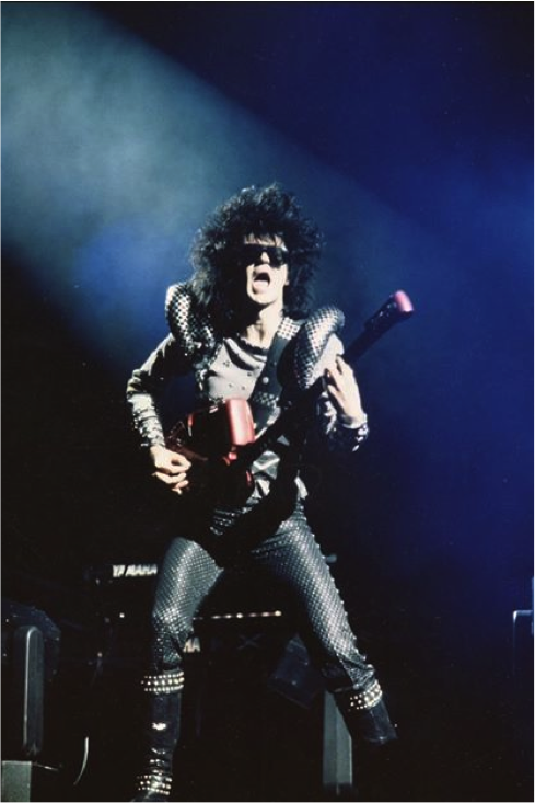 私はKISSのようなルックスにするとカレン・フェイが決めました。顔はシルバーに塗られ、額には稲妻が描かれました。髪は黒く染められました。ジェニファー・バトゥンとシェリル・クロウ以外のバンドメンバーはみな髪を黒く染められました。彼女たちの髪はロングのブロンドになることになっていました。そしてカレンは私にヘアエクステンションを足したため、私の髪の毛は長くなりました!ワォ!
