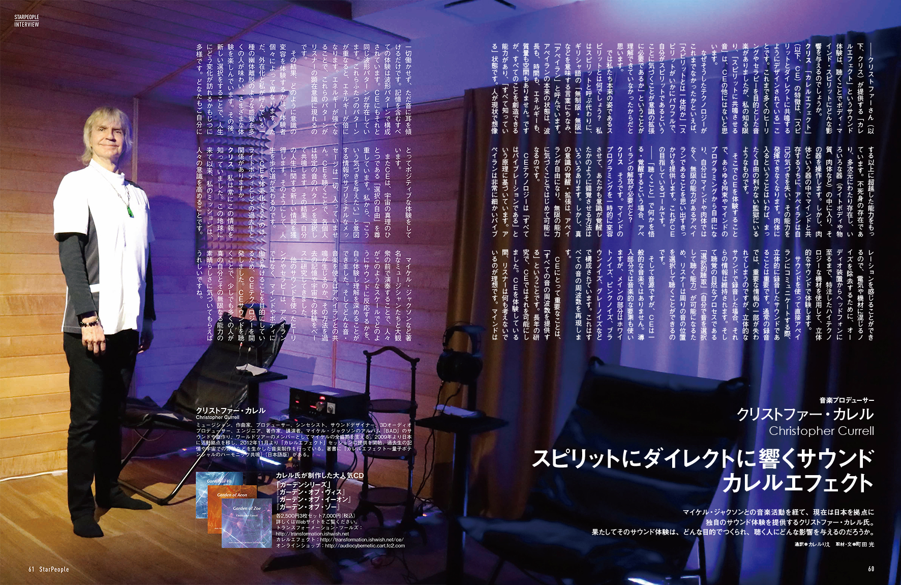 2017年12月に発売された『スターピープル』マガジン2017 Winter Vol. 65号の特集「聴くということ」に、カレルエフェクトに関するクリストファーのインタビュー記事が掲載されています。カレルエフェクトについてわかりやすく説明している、とても美しいページです。
